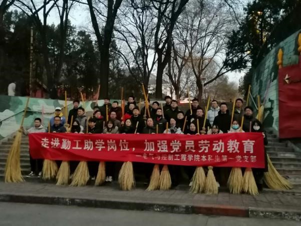 2020年11月24日,全国劳动模范和先进工作者表彰大会在北京人民大会堂隆重举行。为了贯彻落实会议所弘扬的劳模精神、劳动精神、工匠精神,提高广大党员的党性意识、责任意识和宗旨意识,增强党员的使命感和责任感。2020年11月25日,电气与控制工程学院本科生第一党支部在怡丁苑区域开展了“走进勤工助学岗位,加强党员劳动教育”的主题党日活动。