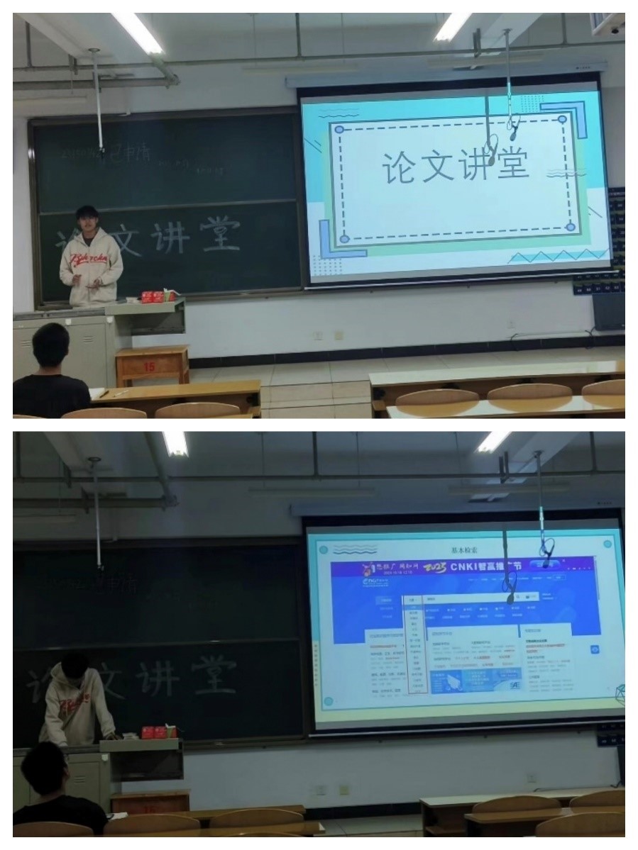 在讲堂开始前,王若凡同学亲切地向同学们问好,并对自己做了个简短的介绍,迅速拉近了与大家之间的距离。讲堂开始后,他首先介绍了什么是检索,并对检索进行了详细讲解。之后,他又向同学们传授了检索的一些方法,并对“高级检索”“二次检索”等做出了具体阐释。在打下这些简单的基础后,王若凡同学向同学们演示了如何对检索到的内容进行筛选以及逻辑运算符“与”“或”“非”在检索时的使用方法。紧接着,他又向大家介绍了什么是论文,论文的组成以及论文该如何读懂。首先,他向同学们讲述了论文的等级是怎样划分的,接着又向大家提到了“北大核心”“南大核心”“SCI”等期刊的重要性,让人印象深刻。之后,就论文的阅读方法这一小课题,王若凡同学又详细地告诉了同学们该如何去读。最后,他以亲切的祝福与美好的祝愿结束了此次论文讲座。