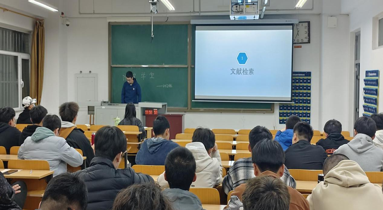 随后李林泽同学对于参赛所需要的文献检索部分进行了着重介绍。向同学们分享了常见的文献查阅渠道,如校园数字图书馆、付费渠道下载,还有检索软件查阅等。