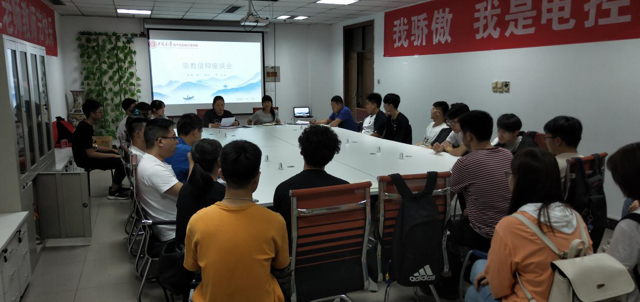 为了关注学院宗教信仰学生的思想动态,加强对大学生的思想政治教育,引导学生树立正确的世界观和价值观,9月17日下午4点半,电气与控制工程学院在主楼619召开了宗教信仰学生座谈会,院党委副书记、副院长杜苇,学生科科长薛艳霞以及我院全体有宗教信仰的同学参加会议。