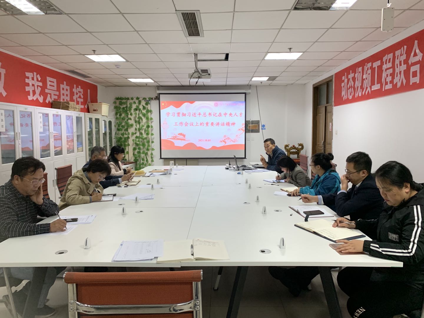 2021年10月5日下午,电气与控制工程学院党委在主楼619会议室召开党委理论学习中心组专题学习。深入学习贯彻习近平总书记在中央人才工作会议上的重要讲话精神。学院领导班子成员、党委委员、各党支部书记、各科室负责人参加了学习,本次学习由学院党委书记陈晔同志领学。