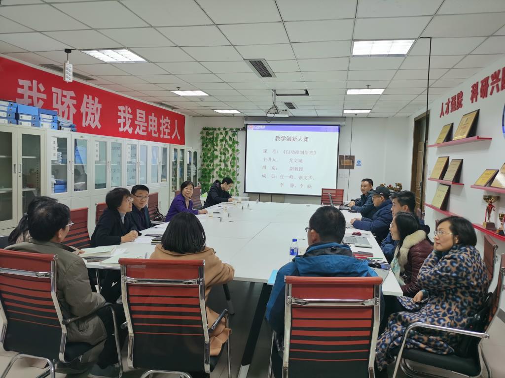 2021年12月1日下午2:30我院与大数据学院在主楼619一起举办了第二届全国高校教师教学创新大赛院赛,邀请教务处副处长董小瑞,化学工程与技术学院教学院长王海宾,大数据学院教学教学院长秦品乐,首届全国高校教师教学创新大赛二等奖获得者乔峰丽,电气与控制工程学院李晓五位教师担任评委。本次院赛分现场答辩和点评两个环节进行,共有三名选手参赛,涉及教师团队十二人。