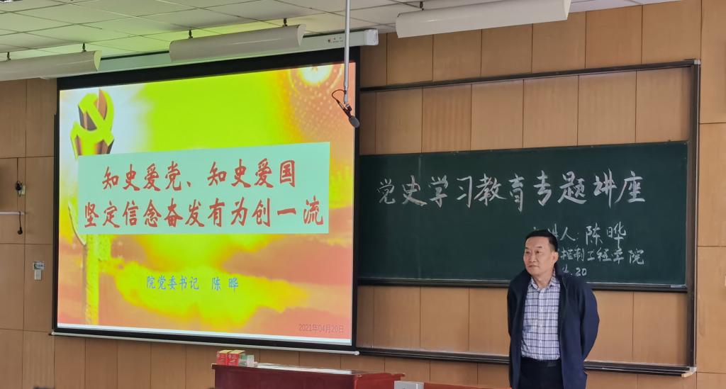 2021年4月20日16:00,电气与控制工程学院在11209H教室举办研究生党史学习教育专题讲座,主讲人为学院党委书记陈晔老师,讲座由研究生辅导员李婷老师主持,全体研究生参加。