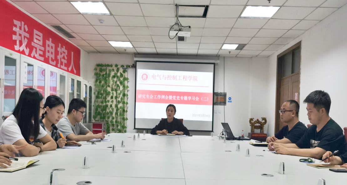 2021年5月14日下午16:30,我院在11号楼619会议室召开研究生会工作例会暨党史专题学习会。会议由研究生辅导员李婷老师主持,全体研究生会成员参加。