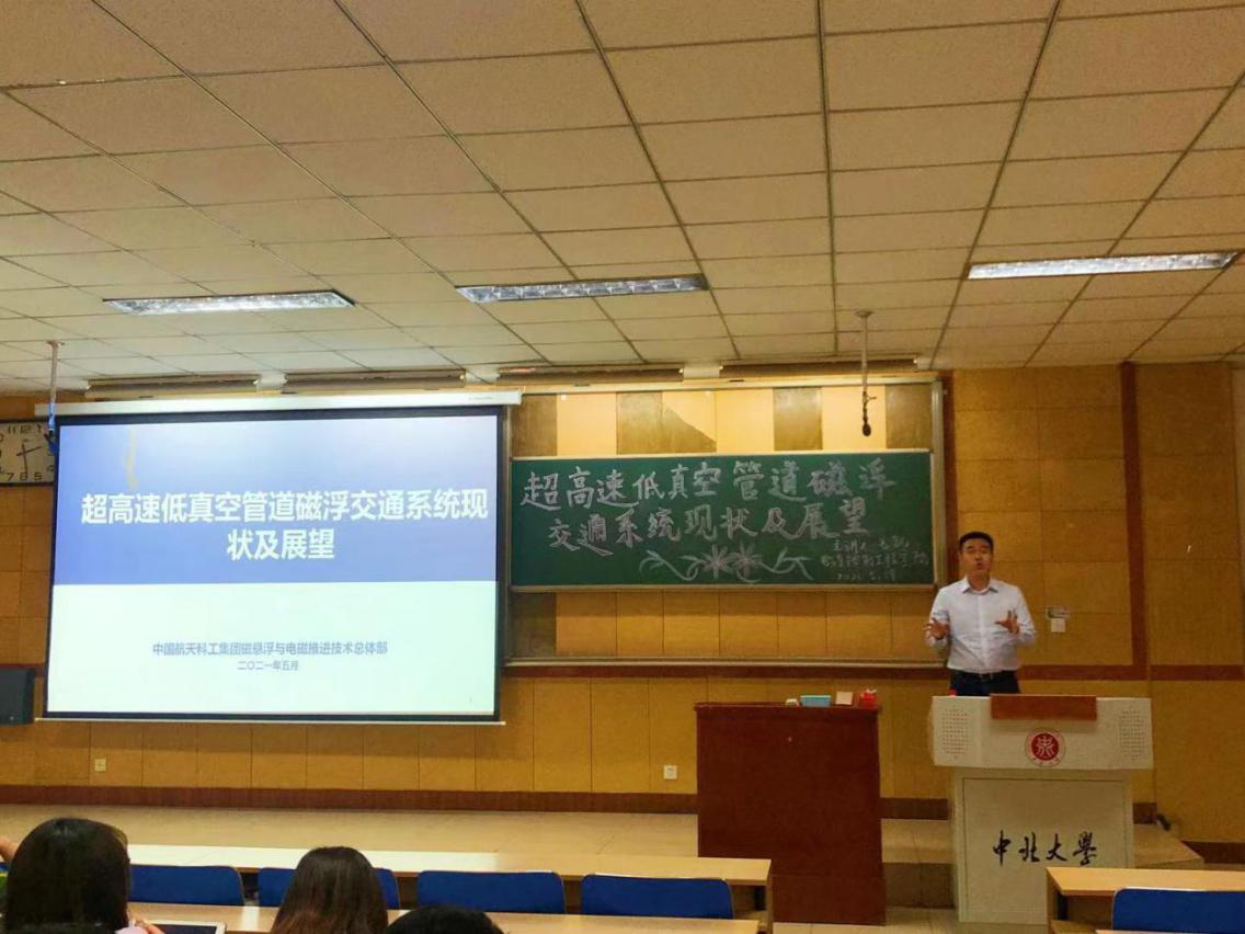 喜迎中北大学建校80周年华诞,校庆日当天5月19日下午14:30,我院特邀中国航天科工集团有限公司磁悬浮与电磁推进技术总体部主任毛凯研究员在09102H教室为我院师生作题为《超高速低真空磁浮交通系统现状及展望》的学术讲座,讲座由马铁华院长主持。