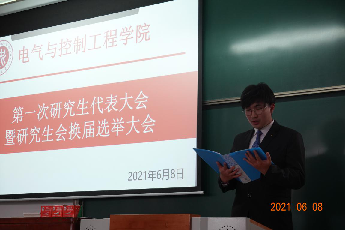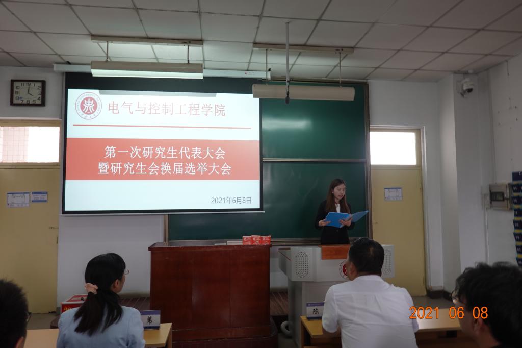 2021年6月8日下午16:00,电气与控制工程学院在11316T教室召开第一次研究生代表大会暨研究生会换届选举大会。出席本次大会的嘉宾有学院党委书记陈晔、党委副书记副院长杜苇、研究生辅导员李婷以及40名研究生代表。大会由Y201502班团支书潘丽同学主持。