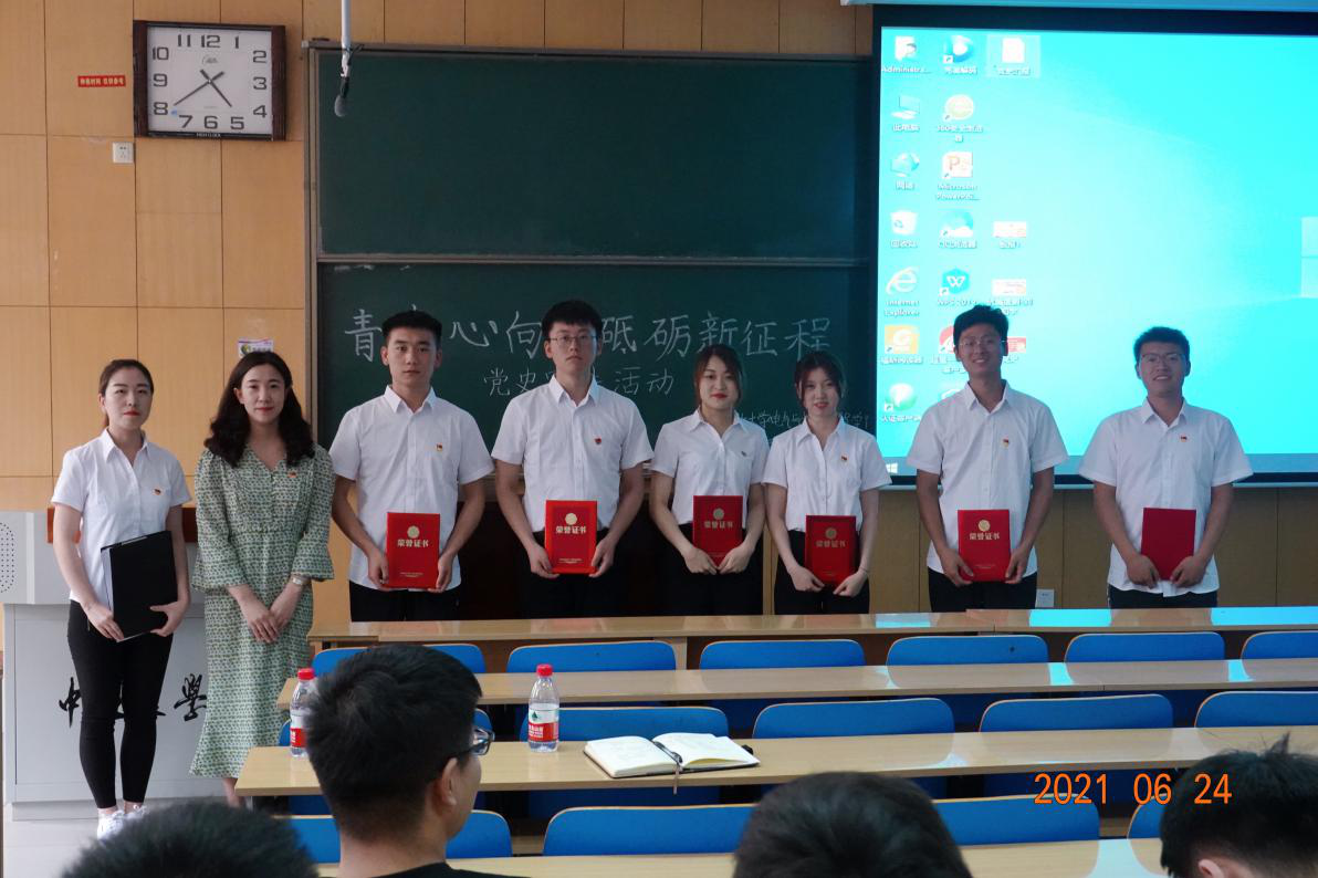 最后,李婷老师为六位同学颁发“优秀宣讲员”荣誉证书,并表示百年党史激荡心灵、感人至深,精彩的宣讲,令“党的盛典、人民的节日”愈发深入人心,让广大学生在回顾党史中感悟初心使命、在接受洗礼中奋进新的征程。