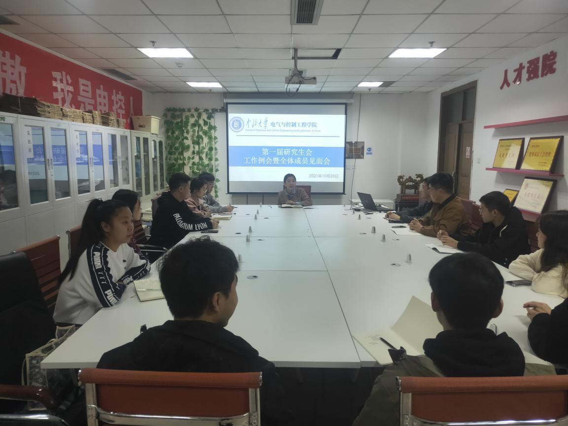2021年10月20日下午16:00,电气与控制工程学院第一届研究生会工作例会暨全体成员见面会在主楼619会议室召开,会议由李婷老师主持,全体研究生会成员参加。