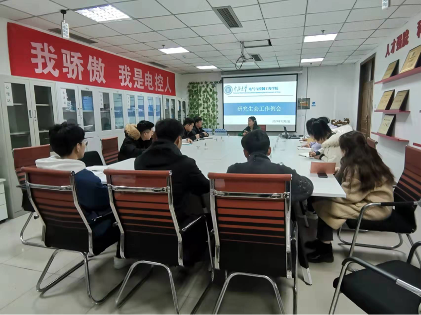 2021年12月2日上午,电气与控制工程学院研究生会在11号楼619会议室召开工作例会,会议由李婷老师主持,全体研究生会成员参加。