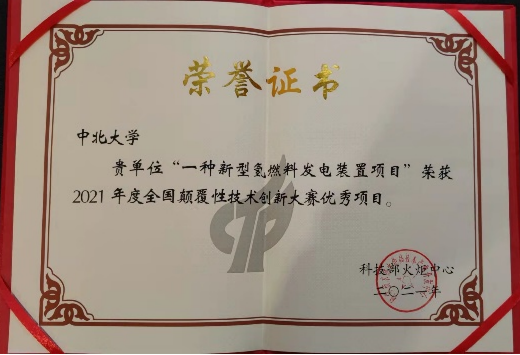 全国颠覆性技术创新大赛分为四个阶段,分别为征集报名、初筛、领域赛和总决赛。2021年10月21日,科技部经多轮评议从近3000个项目中识别出403个进入领域赛。中北大学的“一种新型氢燃料发电装置”被评为优秀项目,是山西省唯一入围领域赛的项目。