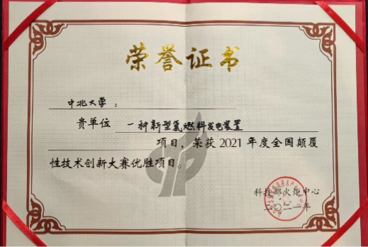 2021年12月20日至22日,科技部主办的首届全国颠覆性技术创新大赛领域赛在四川成都火热进行。作为山西省唯一入围项目——中北大学动态测控与智能装备山西省科技创新重点团队的“一种新型氢燃料发电装置”,被评为优胜项目,等待总决赛,再创佳绩。