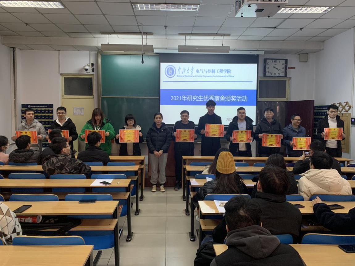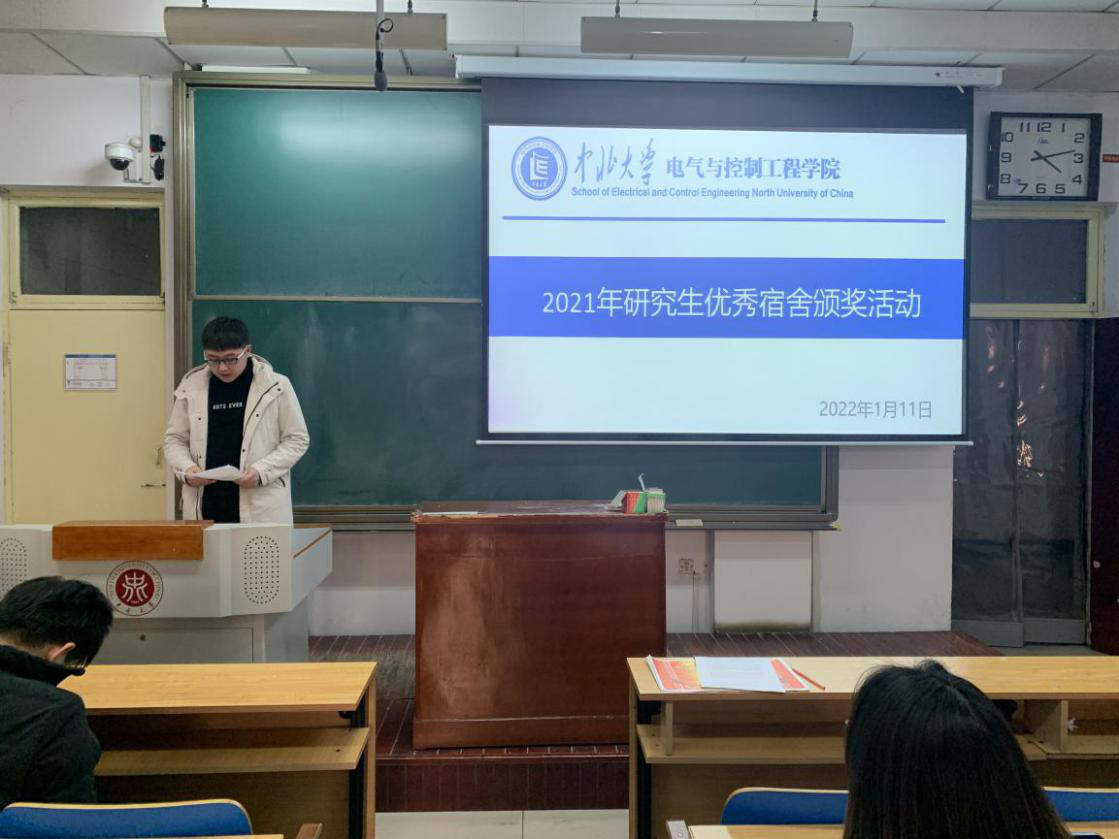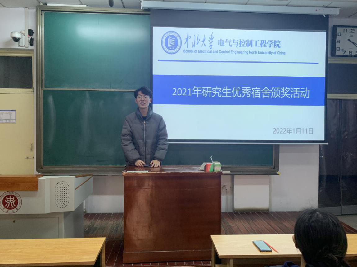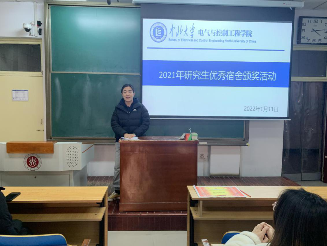 为了切实加强文明校园建设,营造优美清洁的生活环境,杜绝学生宿舍脏乱局面,打造环境整洁的文明宿舍。同时,为进一步表彰先进,树立典型,激励全体同学,砥砺前行。电气与控制工程学院于2022年1月11日下午在11107H教室举办研究生2021年度“优秀宿舍”颁奖活动,研究生辅导员李婷老师、全体院研会成员、各班生活委员及各宿舍代表参加此次活动,活动由院研究生会生活就业部部长荆志伟主持。