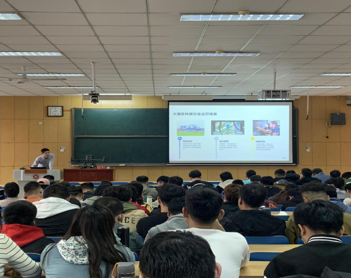 2022年10月26日下午14:30,电气与控制工程学院特邀大疆创业的DJI产品交付工程师、DJI测绘解决方案工程师、DJI政企解决方案工程师张玉龙在主楼11308H教室为我院研究生作题为《迈向全域数字化巡检新时代——大疆电力行业新产品及解决方案》的学术讲座。