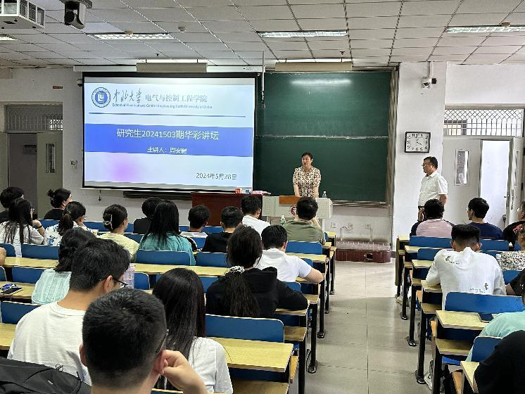 2024年5月28日下午4:00,电气与控制工程学院在主楼11112H教室举办第20241503期华彩讲坛,主讲人为深蓝汽车高级项目总监周安健正高级工程师,讲座由我院余红英教授主持,辅导员李婷和研一研究生参加。