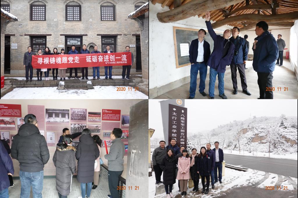 2020年11月21日,电气与控制工程学院党委委员、各支部支委等10余人赴武乡县蟠龙镇温庄村学校前身太行工业学校旧址,开展“寻根铸魂跟党走,砥砺奋进创一流”主题教育活动。