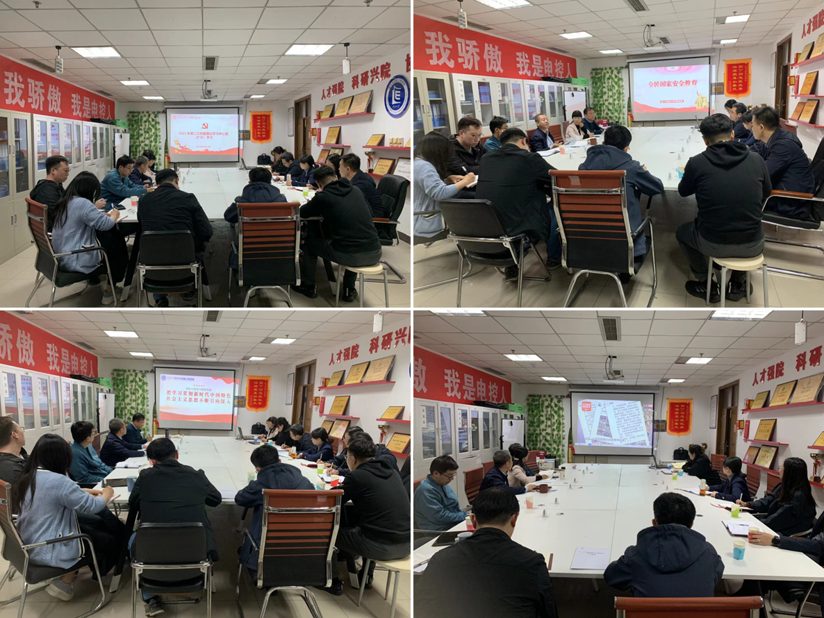 会议伊始,院党委书记赵正杰领学了中办印发《关于在全党大兴调查研究的工作方案》和全民国家安全教育日学习资料。在全党大兴调查研究,是在全党开展的主题教育的重要内容,目的是为深入学习贯彻习近平新时代中国特色社会主义思想和全面贯彻落实党的二十大精神。接着赵书记在领学总体国家安全观时强调,总体国家安全观以人民安全为宗旨,把人民安全作为国家安全最核心的部分,其他方面和领域的安全都要统一于人民安全。