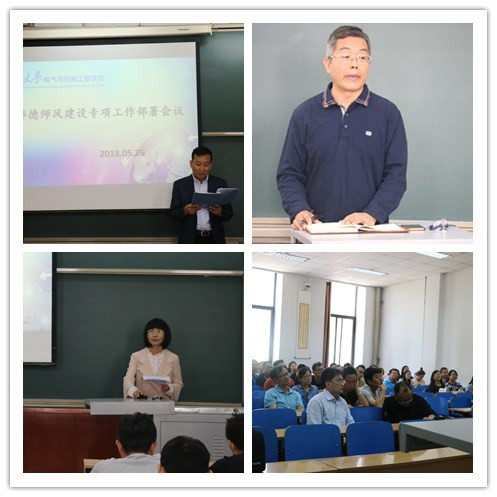 为进一步推进师德师风建设工作,提高教职工的思想政治素质和职业道德修养,建设一支师德高尚、业务能力强的教师队伍,5月25日上午10:00,电气与控制工程学院召开师德师风建设专项工作部署会,全院教职工参加了会议。会议由院党委副书记兼副院长杜苇主持。