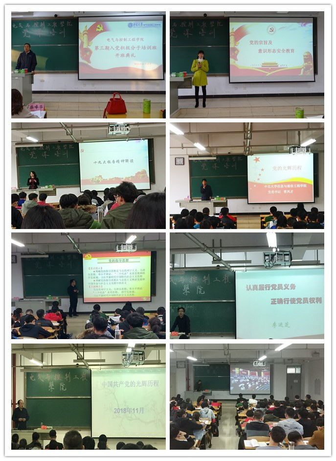 为加强对入党积极分子的培训,做好我院学生党员的发展工作,2018年11月10日,电气与控制工程学院第3期入党积极分子培训班开班典礼在15206隆重举行。学院党委书记陈晔、党委副书记杜苇、学生科辅导员柴峰华、任建红出席此次仪式。