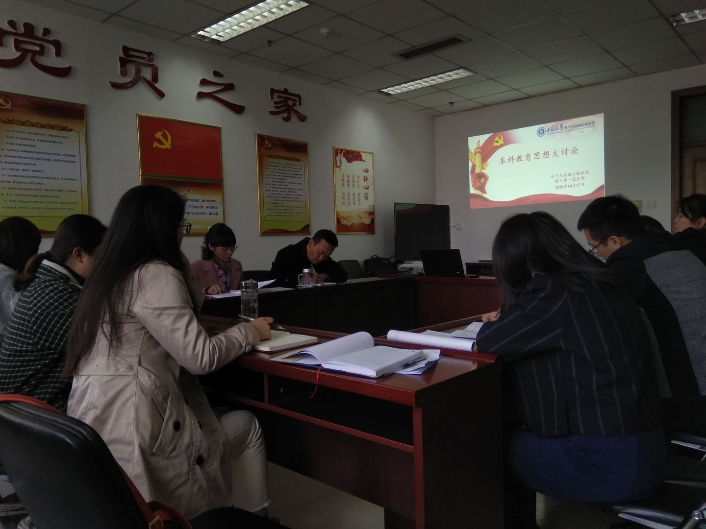 为深入学习贯彻新时代全国高等学校本科教育工作会议精神,主动适应高等教育发展的新形势、新要求,2018年10月17日下午2点半,电气与控制工程学院教职工第一支部在主楼621开展本科教育思想大讨论活动。支部全体党员参加了此次学习活动。本次活动由支部书记杜苇主持。