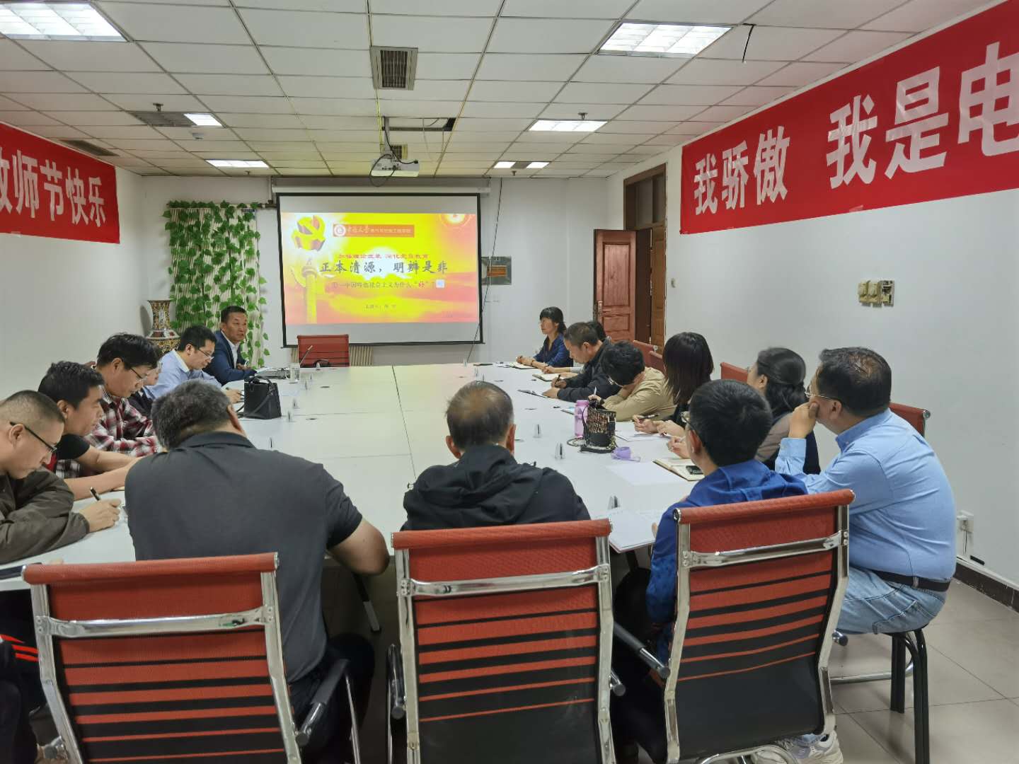 为进一步加深理解习近平新时代中国特色社会主义思想,加强党员干部理论武装,用党的先进理论指导、推进工作,2020年9月22日下午,电气与控制工程学院党委组织开展“加强理论武装,深化党员教育系列活动之一--党委书记讲党课”专题教育活动。全体院领导、党委委员、党支部书记、教职工第一党支部成员参加,教育活动由院党委副书记杜苇主持。