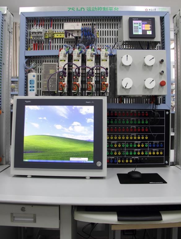 配置B: (M218(40I/O)+LXM23C+HMI)(15套):用于控制电机、电力拖动自动控制系统课程教学实验、组态软件教学实验、PLC课程设计、计算机控制课程设计、毕业设计以及相关培训;