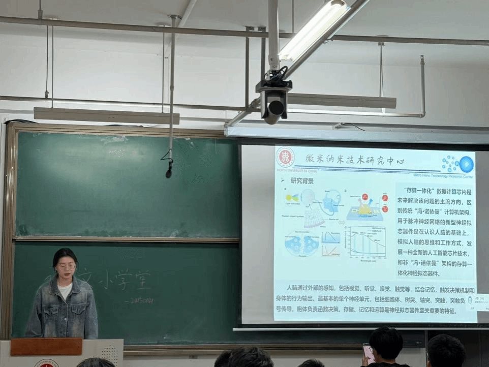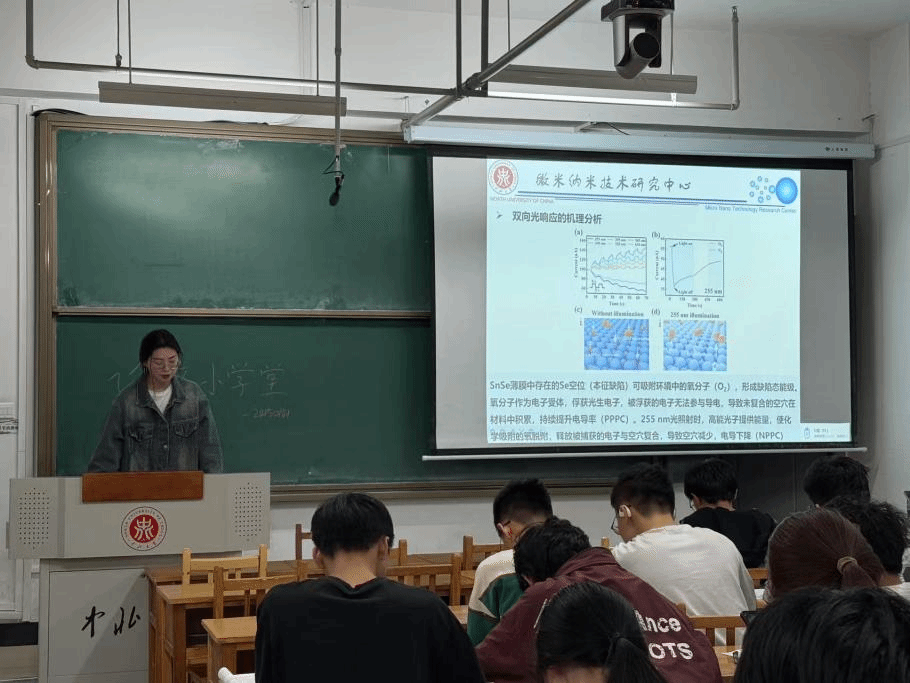 2025年4月29日晚,电气与控制工程学院“一苇以航”辅导员工作室在15107H教室举办了第126期论文学堂,由朋辈导师郭睿主讲。本次学堂围绕论文《利用光诱导掺杂调控SnSe薄膜缺陷实现全光控人工突触》展开深入探讨,该论文发表于国际顶级期刊《Advanced Materials》,研究内容聚焦于神经拟态器件的前沿领域,为未来人工智能芯片技术的发展提供了新思路。