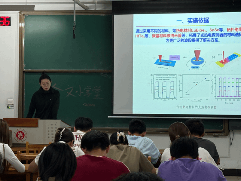 在讲解实施方案与过程时,郭睿导师详细介绍了采用丝网印刷技术制备复合材料的步骤。从材料的选取、预处理,到丝网印刷工艺参数的精确控制,再到后续的热处理优化,每一个环节都关乎探测器的最终性能。期间,还分享了实验过程中遇到的问题及解决方法,让同学们深刻体会到科研工作的严谨性与复杂性。