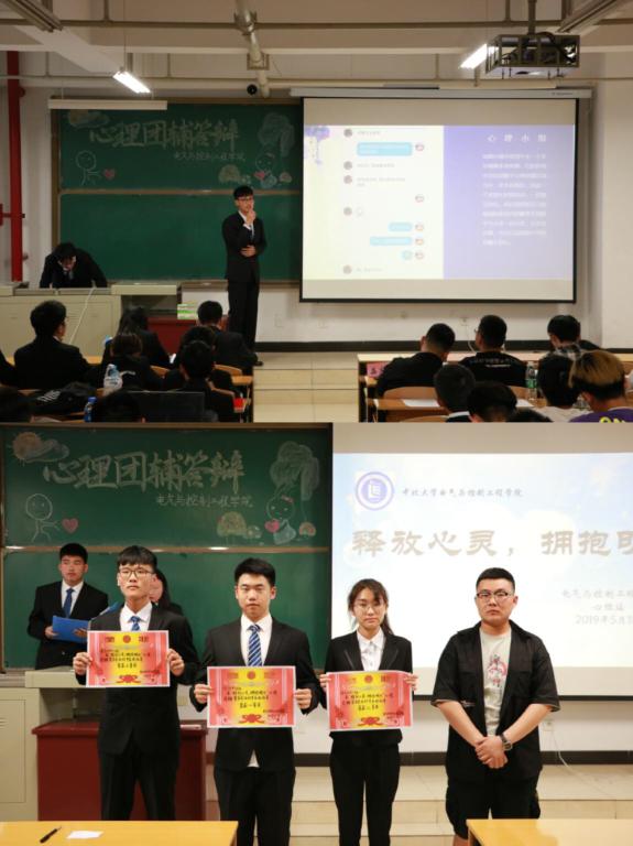 经过一学期的相处与磨合,大一每个班级相对上学期相处的更加的融洽了。但是他们也面临着新的压力来源,比如学业压力、生活压力等。为了能够更好释放学生心理压力,提高学生的素质能力。电气与控制工程学院心理站于2019年5月18日晚7:00组织开展了“释放心灵,拥抱明天”心理团体辅导答辩活动,各班心理联络员代表班级进行了答辩。