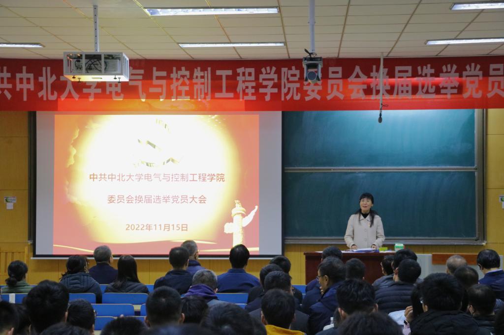 2022年11月15日下午,中共中北大学电气与控制工程学院委员会党员大会在中北大学11509H教室召开。在校全体党员参会,院长马铁华,副院长李晓、任一峰列席会议,学院党委副书记杜苇同志主持会议。