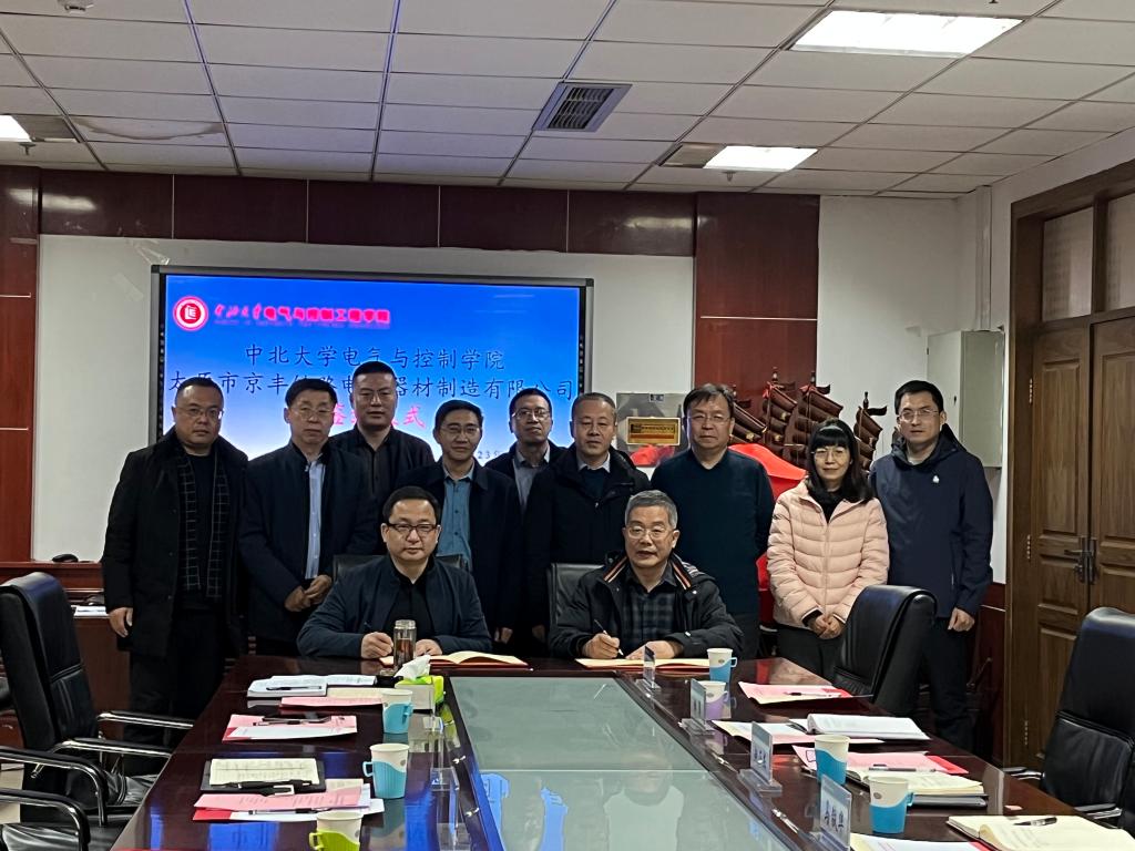 2月27日,太原市京丰铁路电务器材制造有限公司董事长阎鹏一行6人莅临电气与控制工程学院,双方举行了交流会,并完成了校企合作签约暨揭牌仪式。院党委书记赵正杰、院长马铁华、院党委副书记杜苇、副院长任一峰、交通工程系主任贾建芳参加了会议,会议由院党委书记赵正杰主持。