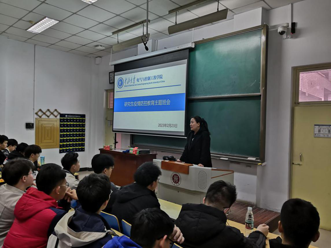 新的学期,为进一步保障学生身体健康,做好学生返校后的各项工作,2023年2月23日上午10:30,电气与控制工程学院在11号楼11210H教室召开研究生疫情防控教育主题班会,班会由李婷老师主持,研一全体学生参加。