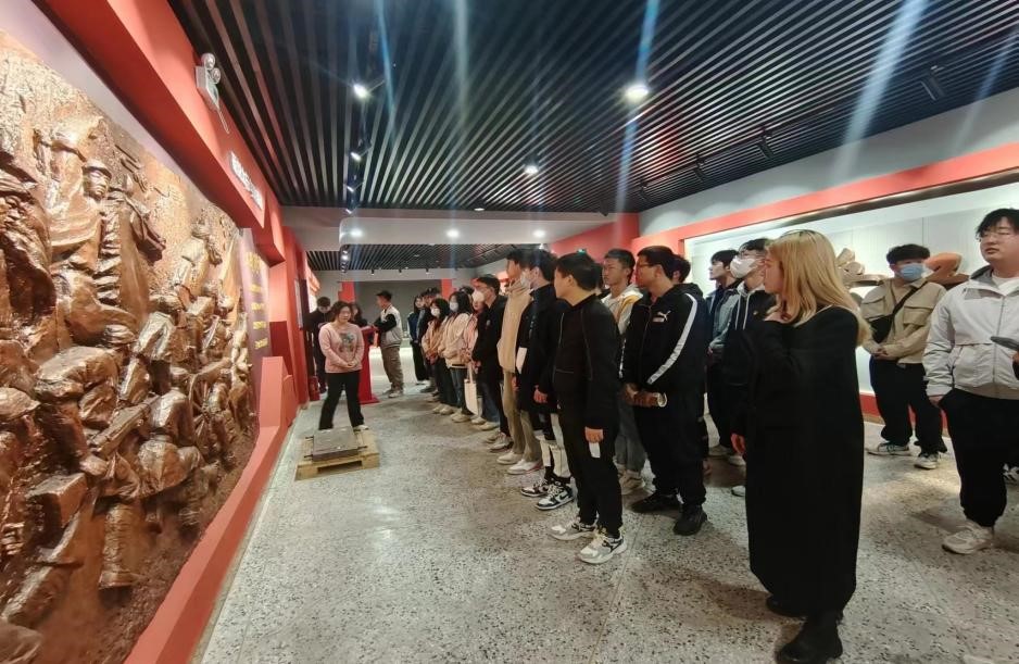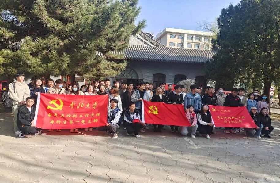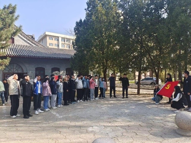此次联合党日活动的第一站是中北大学校史馆,在讲解员的带领下,各位同学学习了校歌、校训的内在含义,一步步了解了中北大学在炮火中建立的艰难发展史,并为一手拿书一手拿枪的前辈们深感敬佩,对校园的红色基因有了更深刻的认识,在坚定党员信念的同时也提高了同学们对学校的认同感与自豪感。参观结束后,各位党员怀着深深的使命感与荣誉感再次重温了入党誓词。