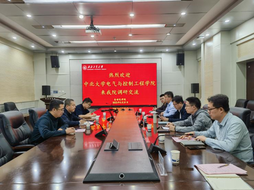 在调研座谈会上,院党委书记赵正杰介绍了中北大学的总体概况、发展历程和办学特色等情况。副院长(主持工作)邵星灵介绍了学院的发展历史、学科特点和研究方向、师资队伍、专业特点和调研目的等情况。5月31日下午座谈会上,西北工业大学自动化学院院长韩军伟主持会议并介绍了党建的总体情况,自动化学院党委副书记(主持工作)李伟林介绍了学院的历史沿革、师资队伍、人才培养、科学研究、国际合作等情况。自动化学院科研副院长许斌、研究生教学副院长王小旭、学生思政工作党委副书记管峻参加了交流,座谈会前参观了学院的院史馆。6月1日上午座谈会上,西安电子科技大学机电工程学院党委书记梁玮主持会议并介绍了学院总体情况和党建特色,机电工程学院副院长段学超介绍了学院的历史沿革、学科评估、师资力量、招生规模、科研项目和经费、研究方向和研究生培养等情况。机电工程学院张强教授重点介绍了控制学科发展状况,党建与学生工作办公室主任赵宇介绍了学院党建的支部建设情况。
