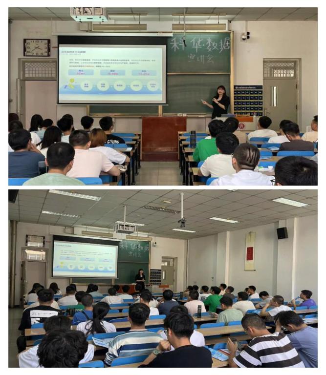 首先,由石经理介绍科华数据有限公司目前所拥有的资源,队伍力量,以及公司背景,公司现状,各个分公司及总公司的情况向同学们做了详细的介绍,科华数据集团创立于1988年,以“以智慧电能驱动低碳数字未来”为使命,深耕于高端电源、数据中心、新能源光伏、新能源汽车充电领域。紧接着,石经理和同学们分享了在该公司的工作经历和经验,详细的描述了该公司的工资待遇和各种福利。最后,热情回答了同学们的提问,真诚的邀请我校同学加入该公司实现自己的梦想。
