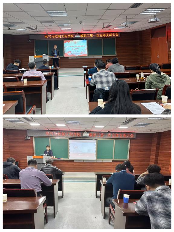 2023年11月21日下午4点,电气与控制工程学院教职工第一党支部在主楼815召开了支部大会。本次会议由院党委书记赵正杰主持,全体支部党员参加了会议。
