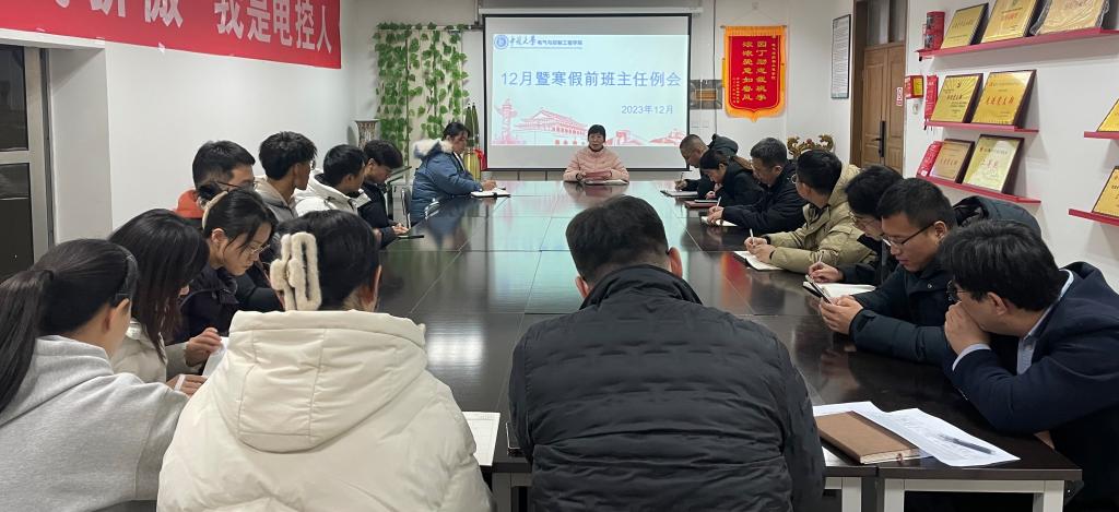 为进一步加强学生日常教育,做好学生元旦及寒假安全管理,12月29日下午4:30,电气与控制工程学院在主楼619会议室召开本月班主任工作会议。全体班主任参加会议,会议由院党委副书记、副院长杜苇主持。