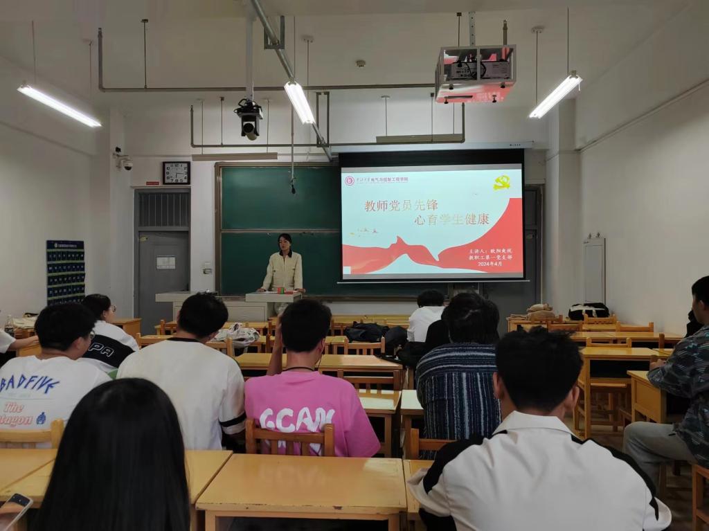 2024年4月15日,支部党员欧阳爽悦在15203教室开展“教师党员先锋,心育学生健康”主题讲座,讲座中,欧阳老师以“朋辈督导伴成长”为题,从心理健康层面出发,对同学们进行了“三生观”教育,强调了生命的不可逆、不可再生、不可互换以及有限性等特征;欧阳老师还从朋辈督导的角度为大家介绍了大学生常见的心理危机类型、身心反应、危机研判及应对处置方式;将我校心理危机四级预警干预机制的落实进行了有效推进;对班级有心理困扰的同学,希望老师和身边同学给予其最真诚的关心,为每一位同学的大学生活保驾护航,使得朋辈心理督导理念深入人心。