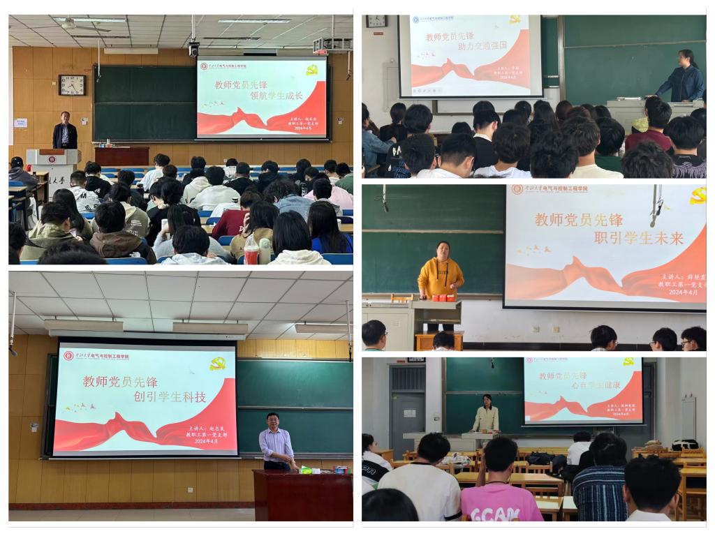 院党委书记赵正杰、院长赵志良、支部书记薛艳霞、支部组织委员李彬,党员欧阳爽悦为学生带来“教师党员先锋,领航学生成长”、“教师党员先锋,创引学生科技”、“教师党员先锋,职引学生未来”、“教师党员先锋,助力交通强国”和“教师党员先锋,心育学生健康”五场系列讲座,覆盖全院研究生本科生千余人。讲座从思想政治教育、科研创新、就业指导、心理健康、专业前景等多方面分阶段、分层次地为学生开展主题教育,以学生关心的问题为聚焦点、着力点和突破点,有针对性的为学生提供帮助,制定个性化学习建议,帮助学生实现全面发展,点亮学生的希望之光,实现教育发展路上“一个都不能少”的庄严承诺。
