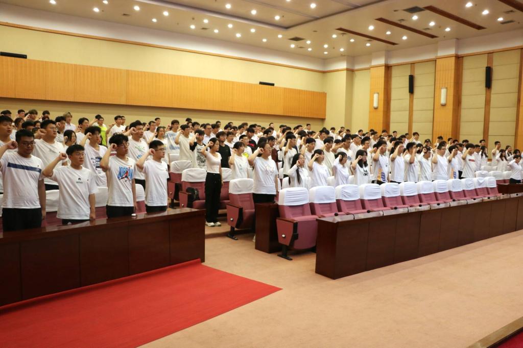 接下来,与会嘉宾分别宣读了《中北大学2023年度团内先进集体和优秀个人名单》、《电气与控制工程学院2023年度团内先进集体和优秀个人名单》、《电气与控制工程学院2023年度新发展团员名单》、《电气与控制工程学院2024年校运动会优秀运动员名单》。紧接着,与会嘉宾为获奖集体和个人颁奖、为新团员代表佩戴团徽。两位获奖的优秀学生代表分别进行事迹分享。她们通过分享自己在思想、学习等方面的成长经历,激励着各位团员们要以“一日不为,三日不安”的担当和坚如磐石的信心,只争朝夕的尽头,久久为功的毅力,为学院和学校的发展贡献自己的青春力量。随后,全体共青团员重温入团誓词。
