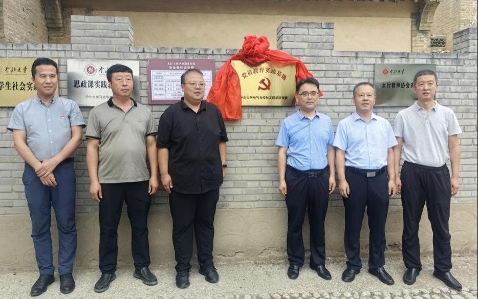 会议结束后,与会人员一同来到了太行工业学校旧址。中北大学副校长尹建平、中北大学团委书记魏翀、电气与控制工程学院党委书记赵正杰、机电工程学院党委副书记兼副院长刘光以及蟠龙镇党委副书记、镇长崔路鹏、温庄村村支书杨树卫共同为党员教育实践基地进行揭牌。