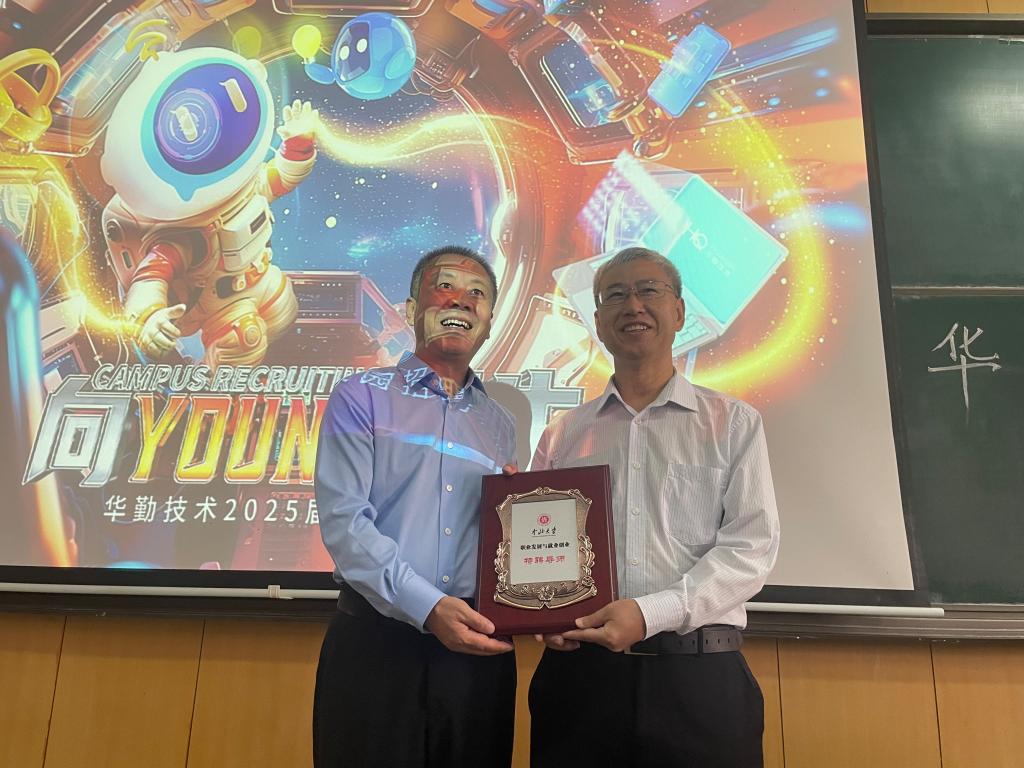 最后,赵正杰书记为华勤技术股份有限公司副总裁戎伟颁发了中北大学“职业发展与就业创业特聘导师”聘书。强调了职业生涯中,向YOUNG而生保持年轻的心态意味着勇于探索新领域、敢于尝试新事物、积极适应变化,鼓励同学们在职业生涯中充分发挥自己的优势,追求卓越。
