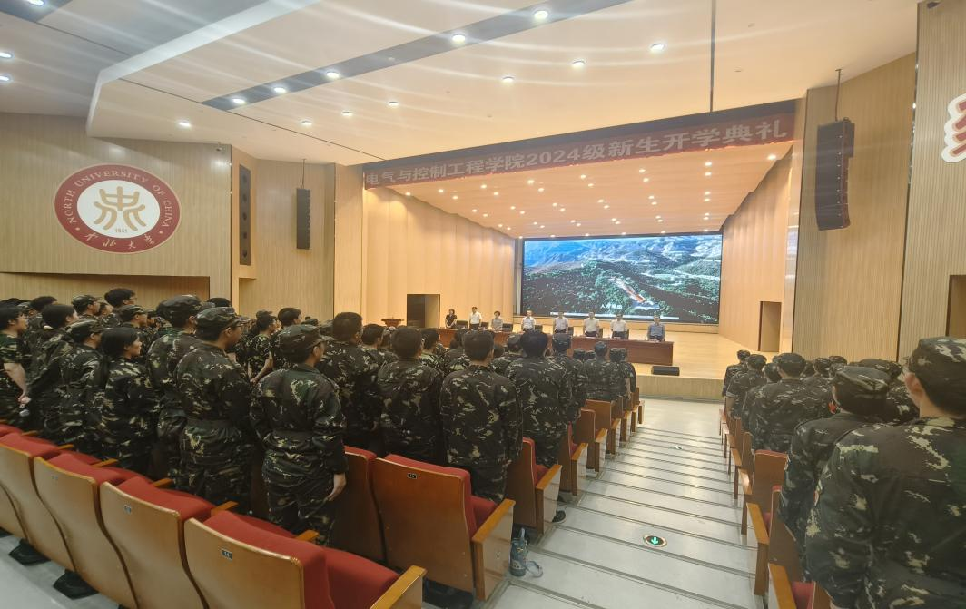 “巍巍太行山高,滔滔黄河水长”,开学典礼最后,属于中北人的旋律响起,全体2024级同学奏唱《中北大学校歌》,决心铭记铮铮誓言,践行太行精神,争做新时代电控人。