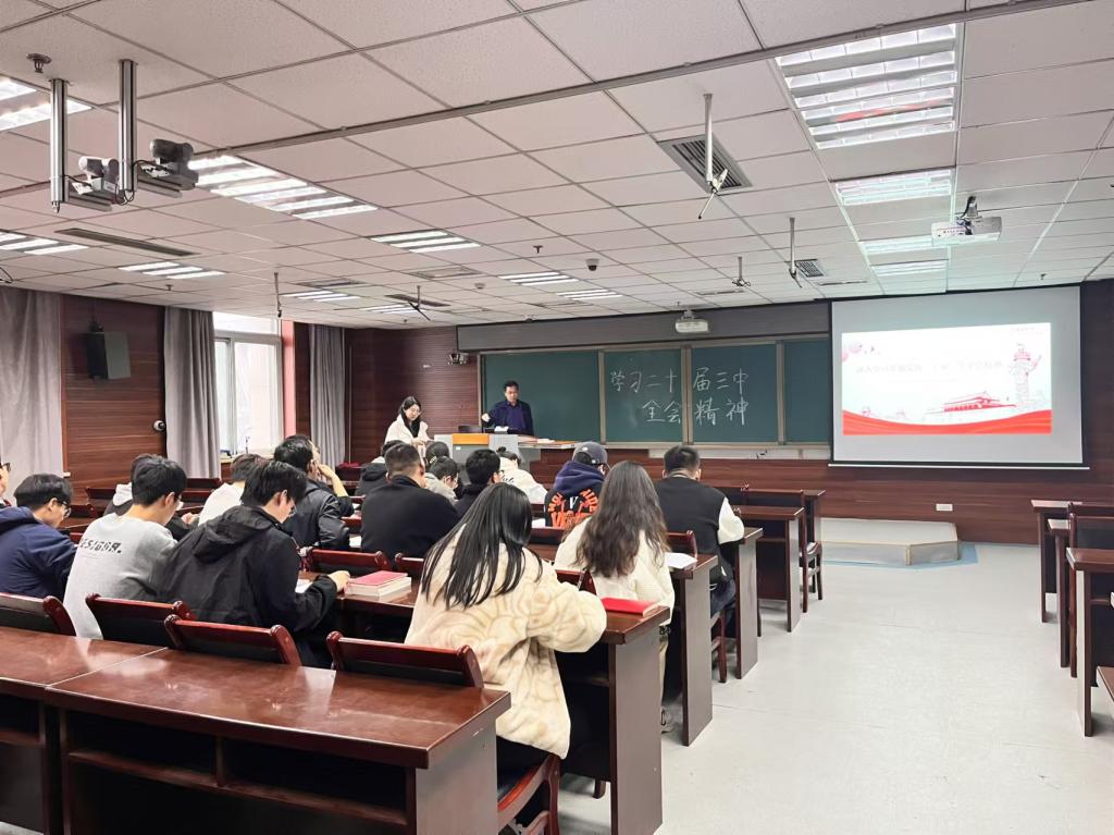 院党委张利平老师全面梳理了二十届三中全会通过的《中共中央关于进一步全面深化改革、推进中国式现代化的决定》。教育是国之大计、党之大计,教育兴则国家兴,教育强则国家强。张利平老师重点强调了其中关于教育改革举措的部分:教育、科技、人才是中国式现代化的基础性、战略性支撑,必须深入实施科教兴国战略、人才强国战略、创新驱动发展战略,希望各位党员同志们可以发挥自身优点,为国家的教育、科技、人才发展做出贡献。张利平老师希望大家坚持理论联系实际,紧密结合自身的学习、科研、学科竞赛、职业规划等,珍惜学习时光,丰富学识,增长本领,服务社会。