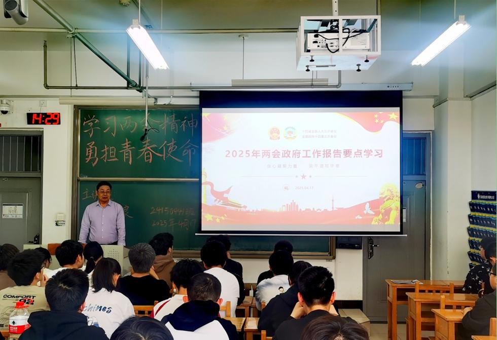 2025年4月17日,2024级电气工程与智能控制专业一班邀请到我院院长赵志良教授做主讲嘉宾,顺利开展了“学习两会精神,勇担时代使命”主题班会,对2025年全国两会精神进行了宣讲。