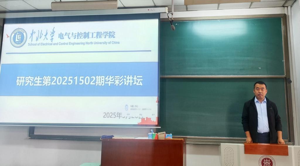 2025年5月26日下午3:30,电气与控制工程学院在主楼11312H教室举办第20251502期华彩讲坛。本次讲坛特邀正高级工程师王利勇担任主讲嘉宾,以“空空导弹制导控制系统的深度解析与实战应用”为主题,为在场师生带来了一场精彩的学术报告。讲坛由我院余红英教授主持,吸引了近百名研究生踊跃参与,现场座无虚席,学术氛围浓厚。