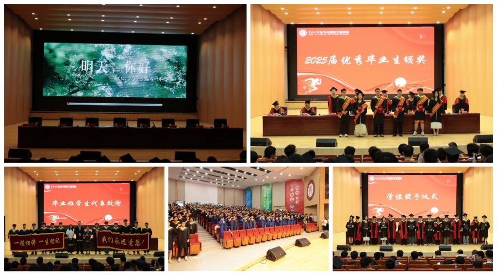 学院院长赵志良致辞,向圆满完成学业的毕业生表示祝贺,希望大家秉持学院“精电善控 崇学求源”的精神,带着中北电控人的豪气和自信,带着对国家和人民的忠诚,带着永不熄灭的希望和梦想,走向社会,走进更大的人生课堂,迎接新的挑战,开启辉煌的人生新篇章。副院长李晓宣读《中北大学电气与控制工程学院2025届优秀毕业生名单》,主席台领导为优秀毕业生颁发荣誉证书,表彰他们在学业及实践中的突出表现。