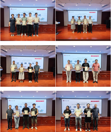 8月22日,培训结业及证书颁发仪式隆重举行。出席仪式的嘉宾有:苏州工学院电气与自动化工程学院副院长陈景波,中北大学电气与控制工程学院党委书记赵正杰,中北大学机械工程学院副院长苗鸿宾,中北大学电气与控制工程学院副院长李晓,太原工业学院自动化系书记贾根元,以及倍福中国华北大区经理王宁强、客户经理兼娱乐行业经理贾岗、教育合作经理钱生等。