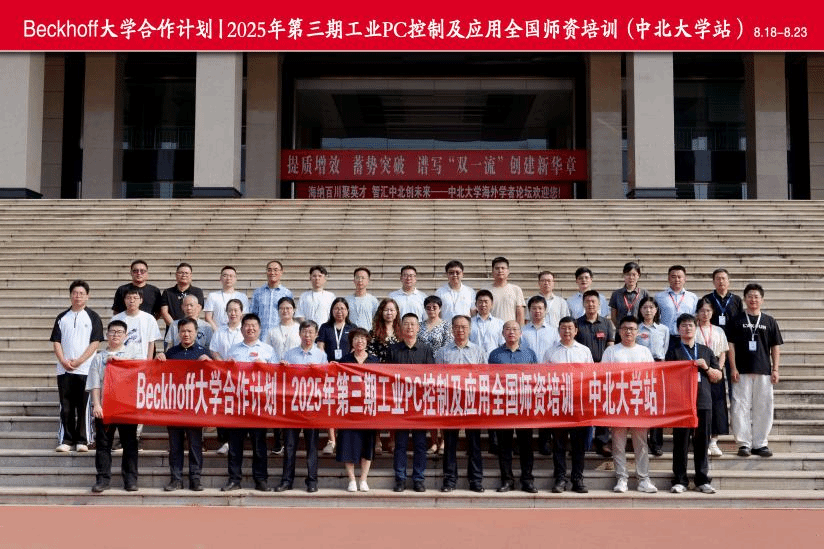 2025年8月18日至22日,由中国电工技术学会电气工程教育专委会、倍福中国自动化有限公司和中北大学主办,中北大学电气与控制工程学院承办的 “2025年第三期工业PC控制及其应用全国师资培训(中北大学站)” 在中北大学成功举办。来自全国16所高校的35位骨干教师、行业专家及企业代表齐聚太原,开展了为期五天的工业PC控制技术深度学习与交流。