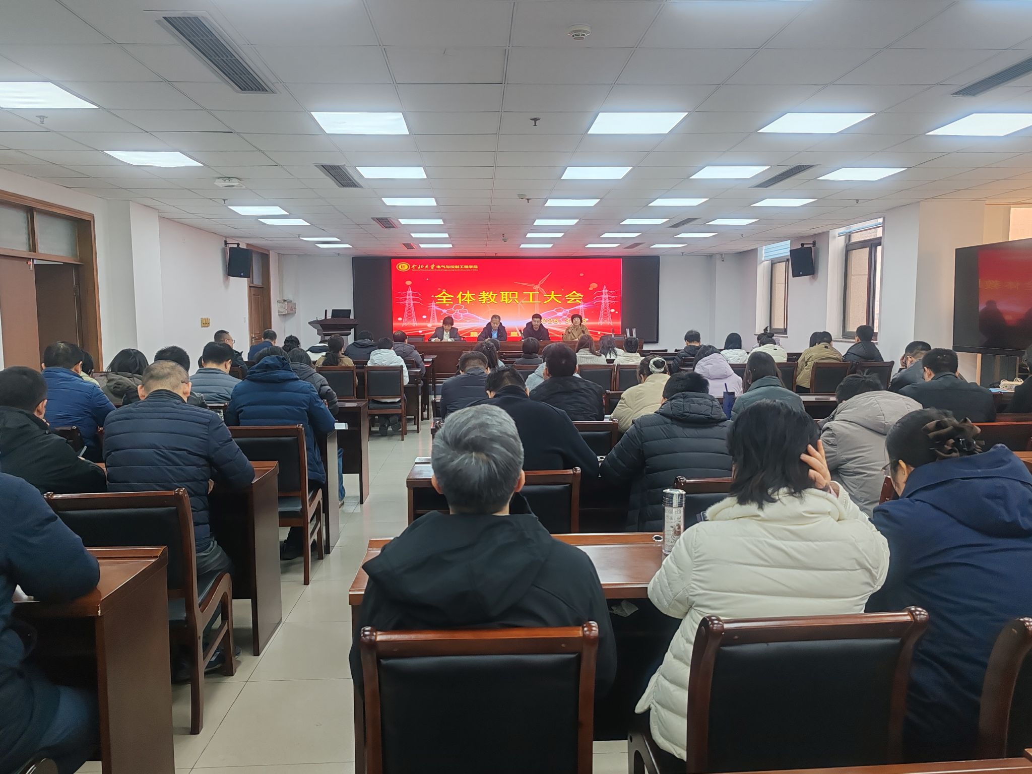 为统一思想、明确任务,扎实推进新学期各项工作有序开展,2026年3月13日,电气与控制工程学院在主楼1200室召开全员教职工大会。学院领导及教职工参加会议,会议由院党委副书记杜瑞平主持。