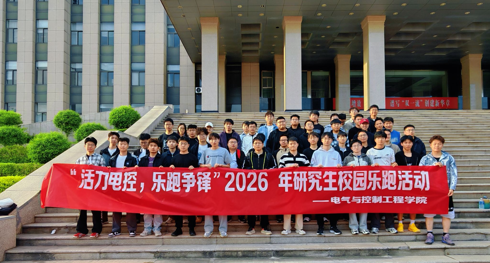 2026年4月18日,为丰富研究生校园文化生活,增强同学们的身体素质,进一步营造积极向上、健康文明的校园氛围。电气与控制工程学院举办“活力电控,乐跑争锋”研究生校园乐跑活动。学院研究生积极参与,在奔跑中展现青春风采,在运动中凝聚奋进力量。